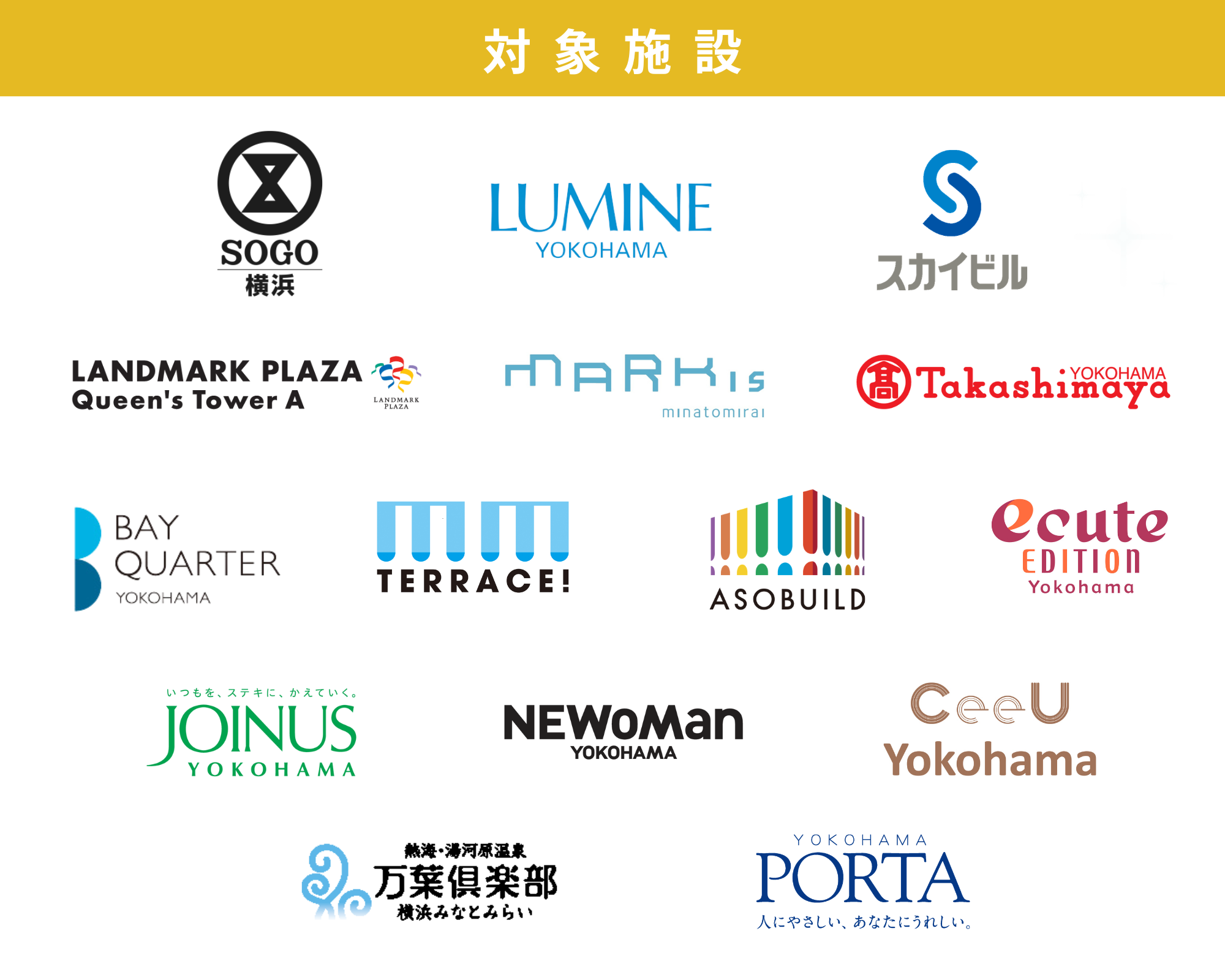 各施設の対象店舗・特典内容は施設名をクリックしてご確認ください。